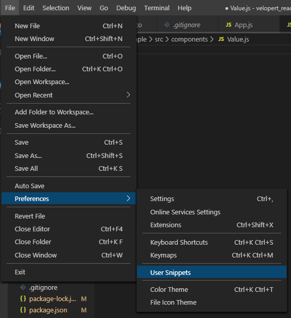 코딩을 할 때 반복적으로 작성해야하는 코드들이 분명히 있다. 이 반복되는 틀을 간편하게 불러오기 위한 기능이 User Snippets이다.