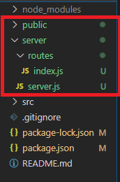 서버를 생성하기 위해 라우터가 들어있는 폴더에 index.js 파일을 생성하고, 라우팅을 할 server.js파일을 생성한다.